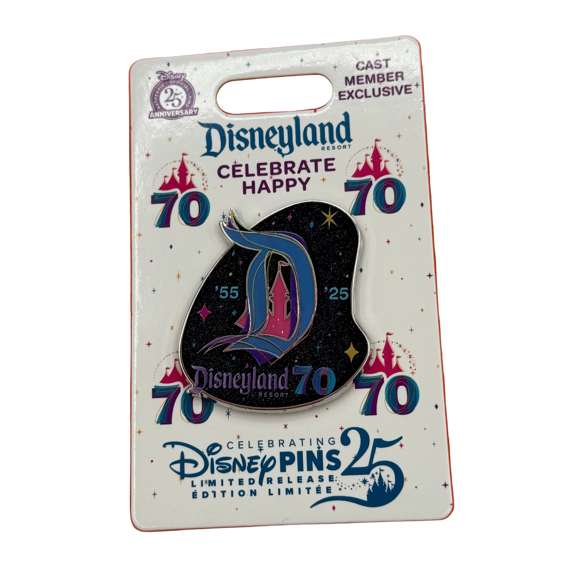 Gothic D Cast Exclusive is a Limited Release pin from the Disneyland Resort 70th Anniversary Celebration series. It was released on May 13, 2025 and was available exclusively at the Disneyland Resort.