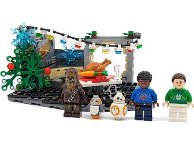 Let young fans relive the Christmas party from the LEGO® Star Wars: Holiday Special with this Millennium Falcon Holiday Diorama. A great gift idea for ages 8 and up, it features an instantly recognizable brick-built version of the lounge area and sleeping quarters inside the iconic Millennium Falcon. A buildable Christmas tree, string of colorful Christmas light elements, mistletoe and a plate of turkey and carrot elements on the table recreate the festive atmosphere. Build, play and mix The set also features 5 LEGO Star Wars™ characters, including new-for-October-2023 Rey and Finn LEGO minifigures in holiday sweaters, plus accessories such as Rey’s Jedi book, to bring the scene to life. For even more creative play possibilities, add the builds and characters found in the 2023 LEGO Star Wars Advent Calendar (75366). Limited availability Please note that this hot LEGO Star Wars building toy is only available to buy from 1 October to 31 December 2023.