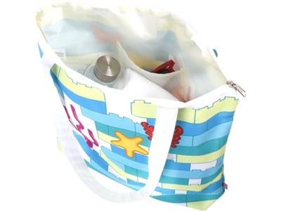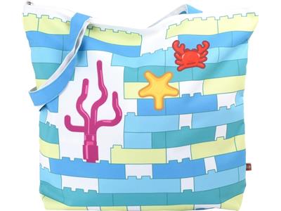 High-quality lined tote bag with a summery LEGO print featuring iconic beach-themed elements. The zip closure provides added security, keeping your belongings safe, and the bag also comes with an inner pocket to keep smaller items neatly organised and easily accessible. Measuring a generous 40 cm x 35 cm, this tote bag offers ample room for all your beach essentials. Playful summer design and bold colours.