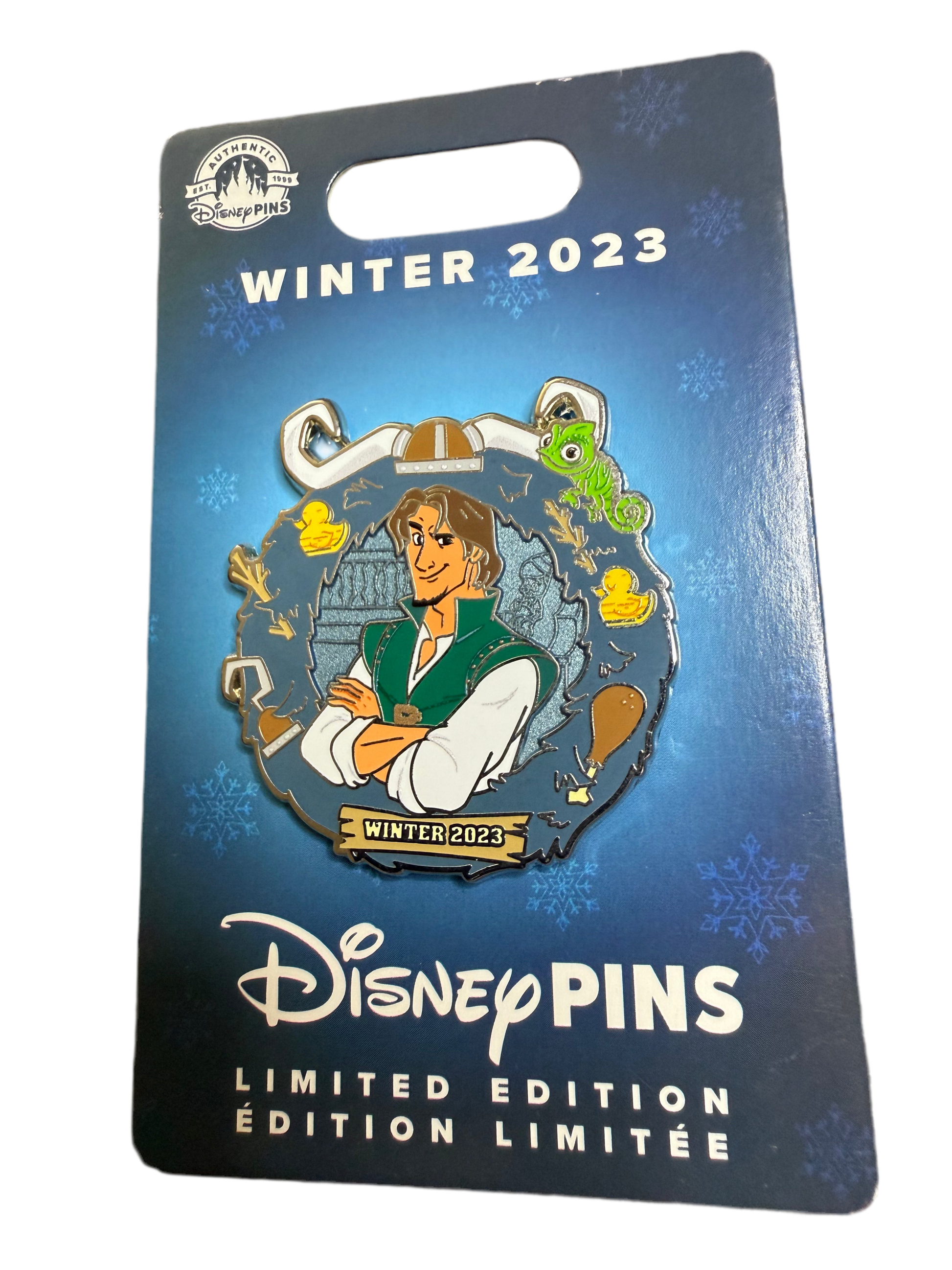 2023 Flynn Rider Wreath is a Limited Edition (LE) 3500 pin from the Disney Parks Seasons - Winter pin series. It was originally released on , 2023 and was available from Multiple Sources (WDW, DLR, etc.).
