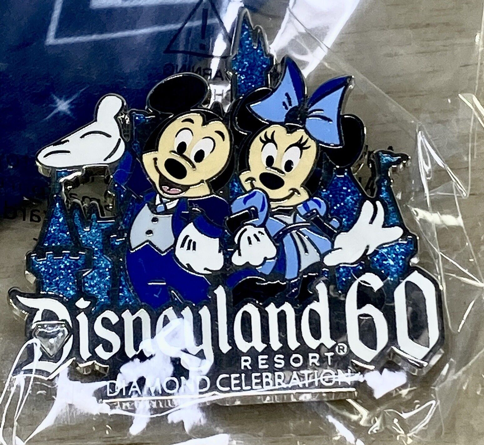 Crafted to commemorate the magical 60-year journey of Disneyland, this intricately designed pin showcases the iconic couple dressed in sparkling attire, embodying the spirit of the diamond anniversary. The attention to detail is extraordinary, capturing every nuance of their jubilant expressions and timeless charm.