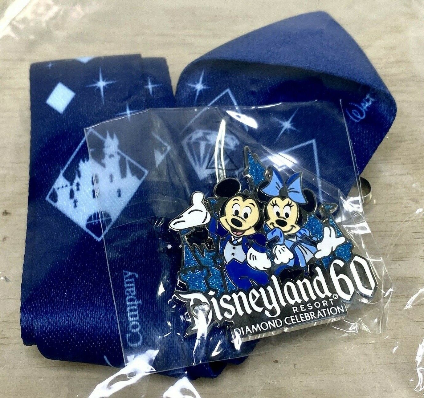 Disneyland 60th Anniversary Diamond Celebration Lanyard Pin Mickey Minnie NWT
