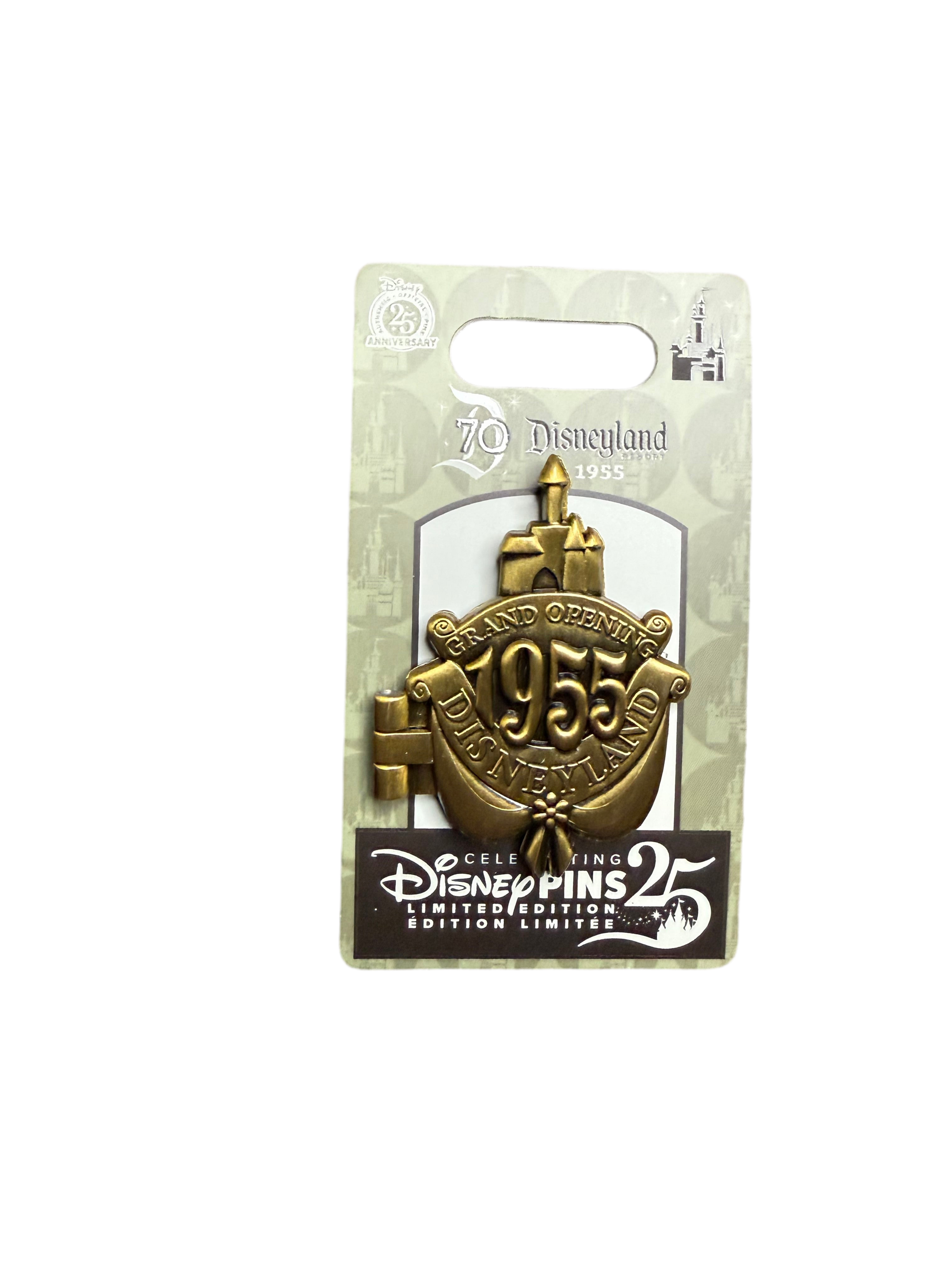 The "Grand Opening, 1955" Walt Hinge pin is part of the Disneyland Resort 70th Anniversary Celebration series and has a Limited Edition (LE) of 3000. This pin was first released on July 15th, 2025 at Disneyland Resort.