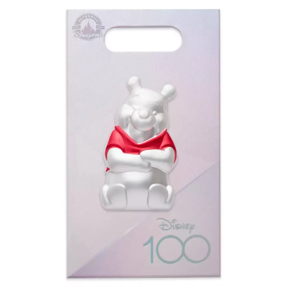 Pooh has found a thoughtful spot in your Disney pin collection. Shimmering in dual metallic tones as a three-dimensional bas-relief sculpt, this ''platinum'' pin honors The Walt Disney Company's first 100 years as part of the magical anniversary assortment for 2023.